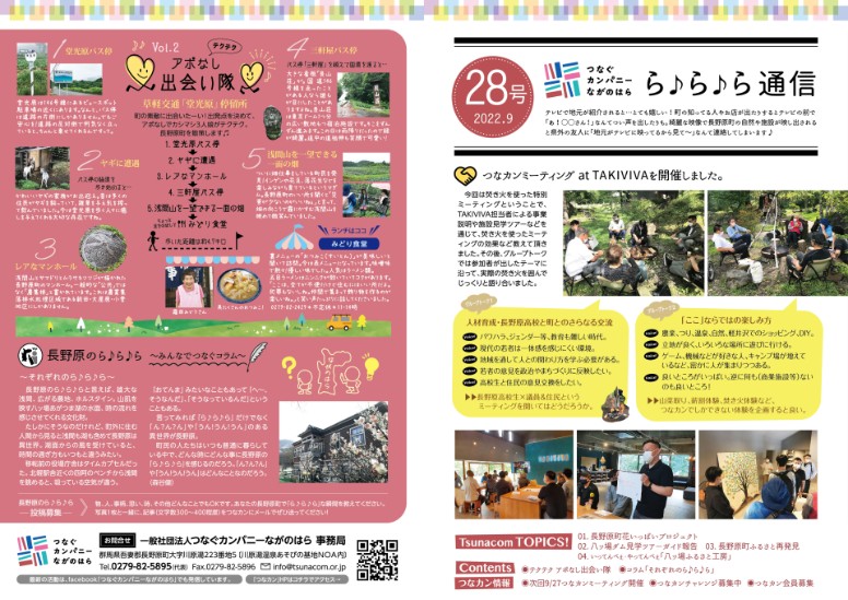「つなカン」から皆さまへ、「つなカン」の活動や、町の魅力を「つなカン」目線でお届けする刊行物「ら♪ら♪ら通信」。第28号を9月13日より町内全戸配布しています。