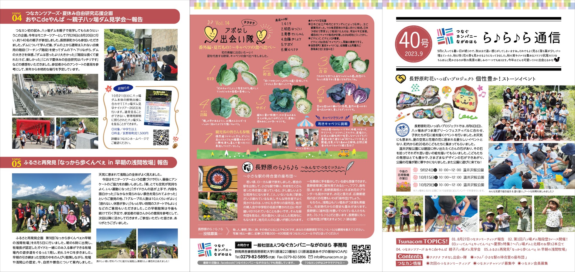 「つなカン」から皆さまへ、「つなカン」の活動や、町の魅力を「つなカン」目線でお届けする刊行物「ら♪ら♪ら通信」。第40号を9月12日より町内全戸配布しています。