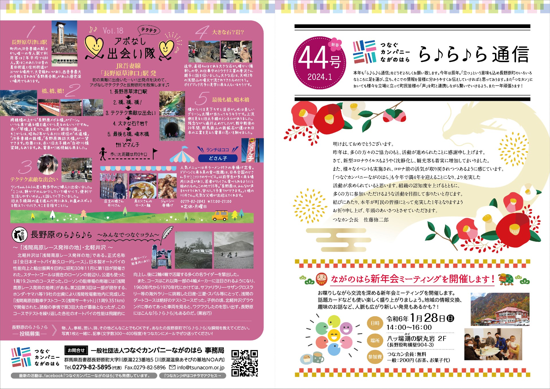 「つなカン」から皆さまへ、「つなカン」の活動や、町の魅力を「つなカン」目線でお届けする刊行物「ら♪ら♪ら通信」。第44号を1月9日より町内全戸配布しています。